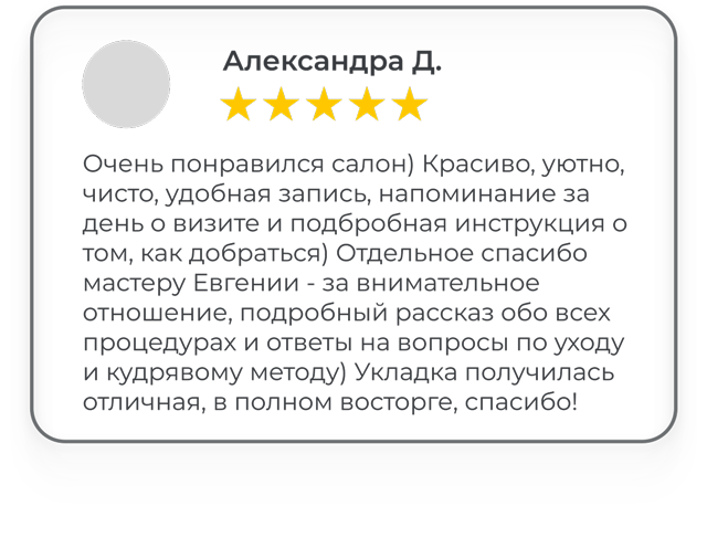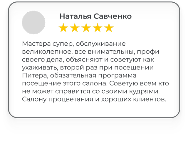 Мы работаем только с кудрявыми и волнистыми волосами и каждую услугу выполняем максимально тщательно и профессионально, учитывая индивидуальные особенности и потребности вьющихся волос.